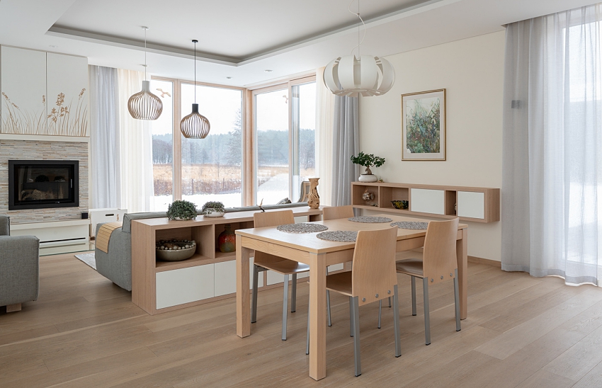 Khu vực sinh hoạt chung khá rộng rãi và có trần cao gấp đôi.
