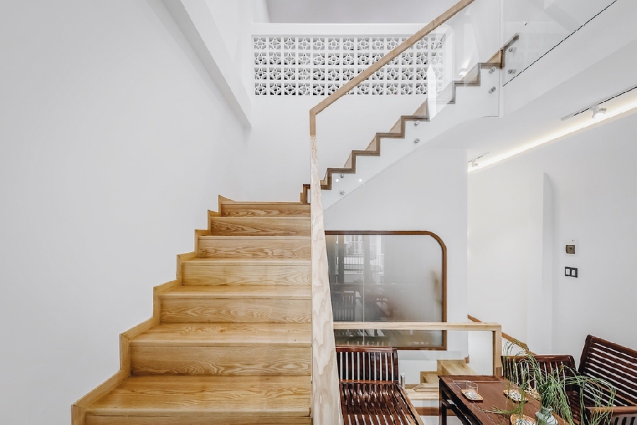 Mái với độ dốc ấn tượng mang ánh sáng và sự thông thoáng vào nhà.